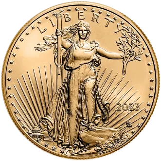 The Gold American Eagle coin combines intrinsic value with rich historical and cultural significance. The iconic design features Lady Liberty as a symbol of freedom and an eagle representing strength and independence. This coin was designed by Augustus Saint-Gaudens and is based on early 20th-century gold coins.