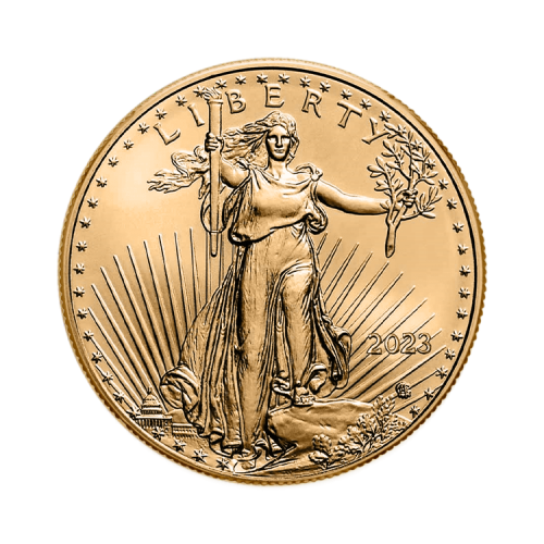 Diese American Eagle-Münze von 1/10 Troy-Unze, Jahrgang 2024, wird von der U.S. Mint geprägt. Die Münze enthält 3,11 Gramm (0,1 Troy-Unze) reines Gold und wird als die Goldanlage-Münze der U.S. Mint betrachtet.