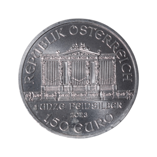 Cette pièce de 1 once troy d'argent Philharmoniker peut présenter des décolorations, des rayures et/ou des empreintes digitales. C'est pourquoi ces pièces sont proposées à un prix particulièrement attractif. Lors d'une vente future, nous ne ferons pas de distinction dans notre prix d'offre. Pour cette raison, ces pièces sont un excellent choix pour un investissement dans l'argent physique.