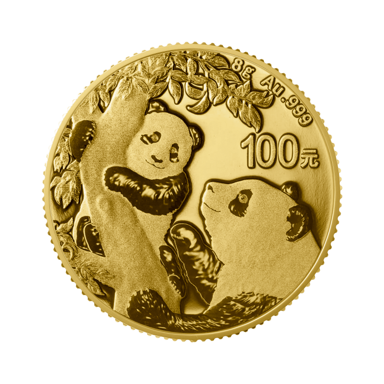 Cette magnifique pièce de monnaie en or Panda a été frappée en l'honneur du panda géant, une espèce d'ours originaire de Chine. Le panda est considéré comme l'animal national de la Chine. Les collections de pièces de monnaie Panda ont été introduites pour la première fois dans les années 1980. Grâce à sa popularité, plusieurs éditions ont été publiées au cours des dernières décennies. La pièce de monnaie Panda est une pièce d'or pesant 8 grammes avec un diamètre de 22 mm. La pièce est frappée en or pur à 99,9 %.