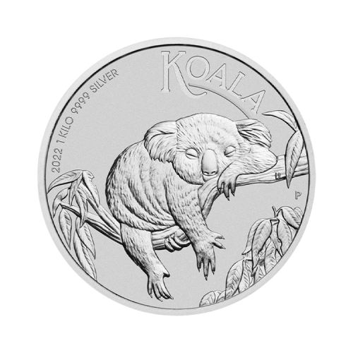 Deze 1 kilo zilveren Koala munt is uitgegeven door de Perth Mint in 2022. De munt bestaat uit 1.000 gram 99,99% puur zilver.