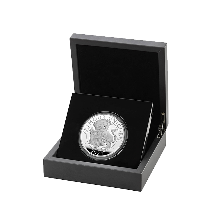 Deze 1 troy ounce (31,103 gram) 99,9% zilveren Tudor Beasts Seymour Unicorn munt is in 2024 vervaardigd door de Royal Mint en heeft een proof kwaliteit. De munt wordt geleverd in een presentatieverpakking met het certificaat van echtheid. De wereldwijde uitgave is beperkt tot slechts 5.500 exemplaren.