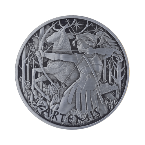 De 1 troy ounce (31,103 gram) zilveren (99,99%) Gods of Olympus – Artemis munt is in 2023 geslagen door The Perth Mint en heeft een antieke afwerking. Dit is de nieuwste uitgave uit de Gods of Olympus serie en deze editie is beperkt tot 1.500 stuks wereldwijd.