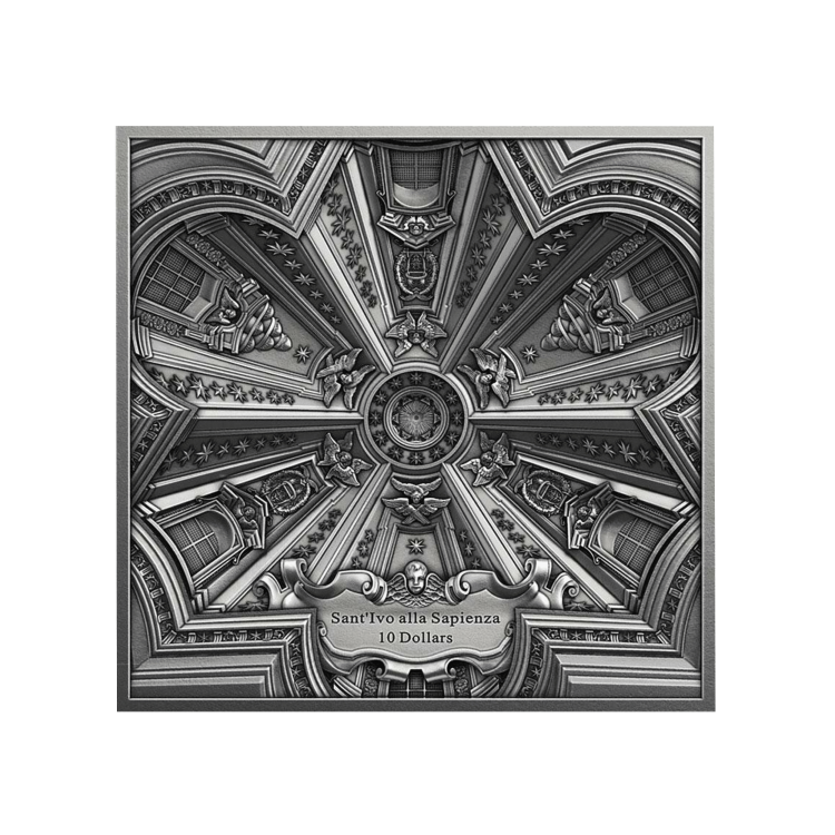 De Dome Sant Ivo munt heeft een indrukwekkend 3D concave reliëf. Deze munt bevat 100 gram puur zilver en heeft een prachtige antieke afwerking.