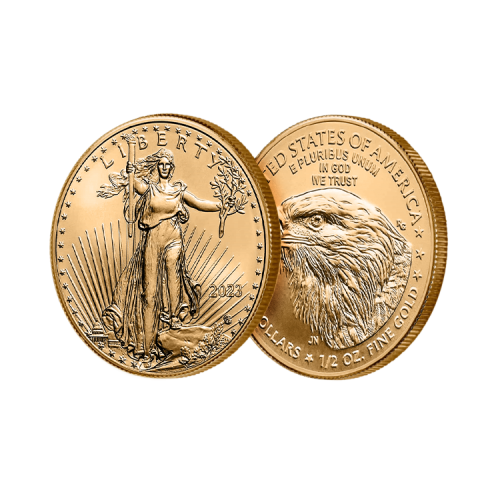 Deze halve troy ounce gouden Eagle munten uit 2024 worden opnieuw geslagen door de United States Mint. De gouden Eagle munten behoren tot de meest geliefde gouden beleggingsmunten in de Verenigde Staten en zijn ook wereldwijd eenvoudig verhandelbaar.