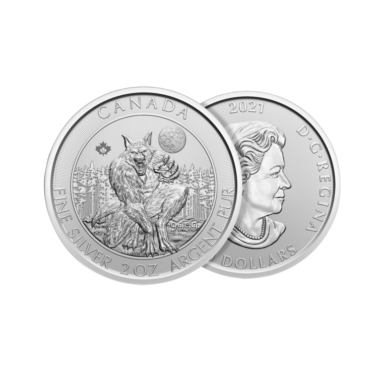De 2 troy ounce (62,2 gram) zilveren (99,99%) munt Canadian Creatures of the North Coin, de Weerwolf is in 2021 geproduceerd door de Royal Canadian Mint en maakt deel uit van de Creatures of the North serie. De munt heeft een griezelige uitstraling en sluit perfect aan bij de spannende verhalen over de wezens die tevoorschijn komen tijdens de volle maan.