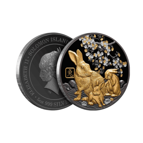 De 5 troy ounce zilveren munt van Solomon Island Lunar 2023 is geïnspireerd door de Chinese dierenriemkalender: Lunar. Deze verzamelmunt uit het jaar van het konijn is geslagen in 99,9% puur zilver.