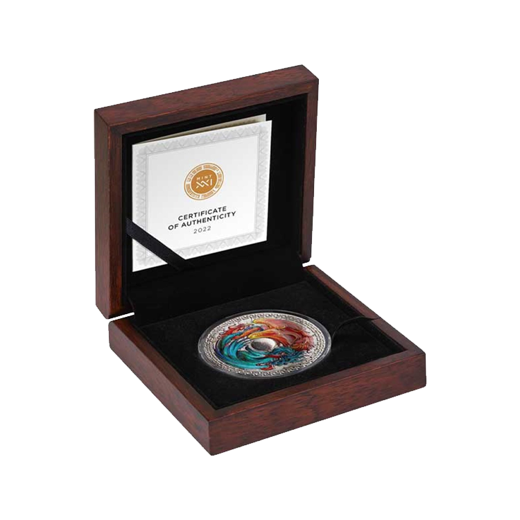 Deze unieke 1 troy ounce zilveren munt is vervaardigd uit een deel van de Aletai meteoriet. De munt heeft prachtige kleuren en wordt geleverd in de originele capsule en verpakking, inclusief het certificaat van echtheid. Wereldwijd zijn er slechts 888 exemplaren beschikbaar!