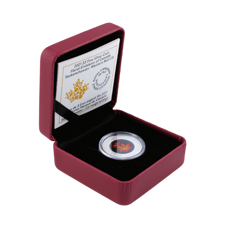 Bitgild flower emblem coin from Canada is a unique coin based on the flower emblem of Saskatchewan, the Western Red Lily. Various provinces and territories in Canada are represented by flower emblems. This is also the flower depicted on the coin. The Saskatchewan was minted by the Royal Canadian Mint and consists of 7.96 grams of pure silver (99.9%). The diameter is 27 mm.